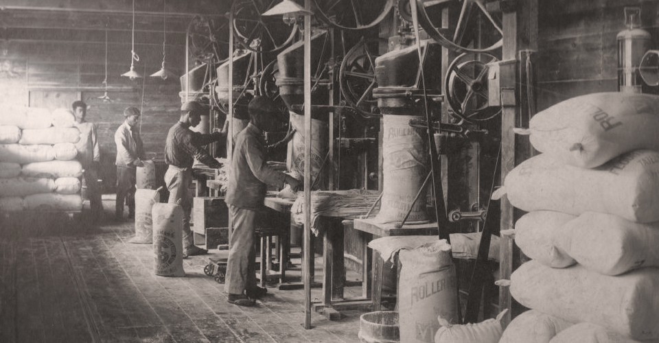 我が国において、まだ水車製粉が主流だった明治中期、機械製粉の将来性にいち早く着目し、1900年に館林製粉株式会社を設立。機械製粉の先進技術や品質管理、経営手法を欧米に学び、高品質な国産小麦粉の生産を開始しました。また、製粉事業に関連する「イースト」や「篩(ふるい)」事業の国産化のため、新会社を設立しました。